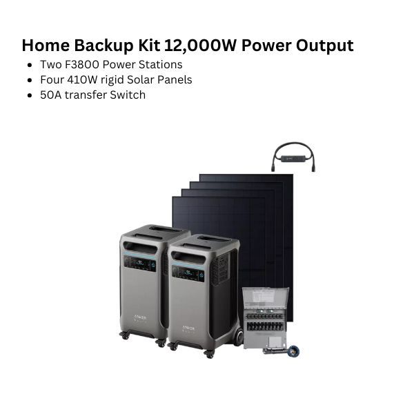 Anker SOLIX wiith Two Packs of F3800 Portable Power Stations, 50A Transfer Switch kit and 4 × 400W Solar Panels, 7680wh Power Station 12000W Genarator for Home Use, Small Business, RVs, Emergencies, Outages, and Outdoor Camping.