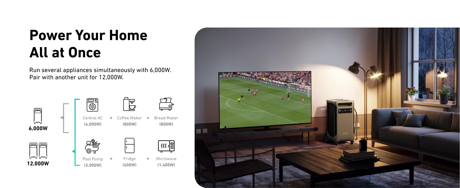 12,000W of Dual-Voltage Power: With Double Power Hub, your output rises to 12,000W, and you gain 120V/240V split-phase power-great for all appliances at home.