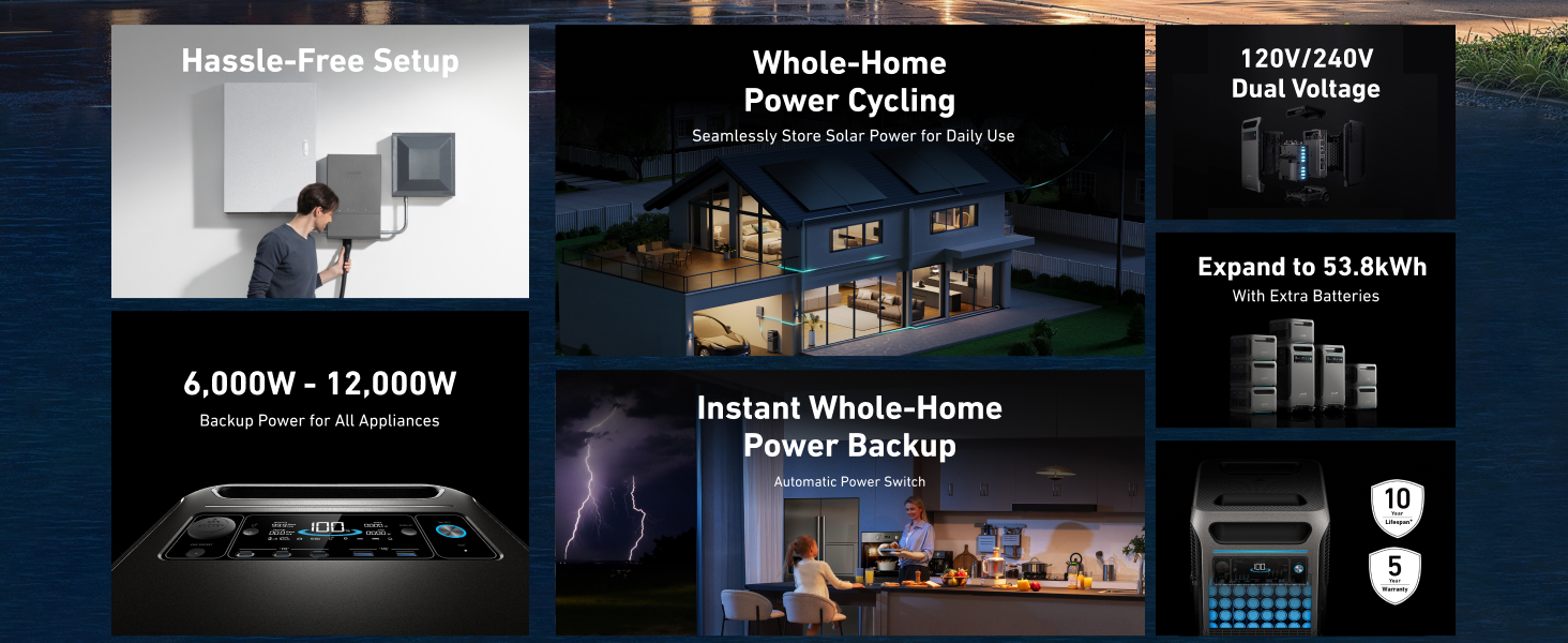 12,000W of Dual-Voltage Power: With Double Power Hub, your output rises to 12,000W, and you gain 120V/240V split-phase power-great for all lighting, secuirty system, Internet, Ac units and appliances at your business premise.