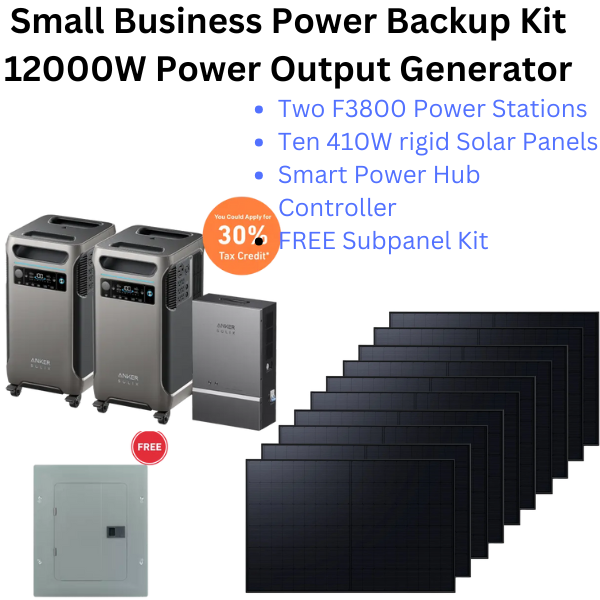Solar Generator 12,000W Power Output Small Business Backup Kit