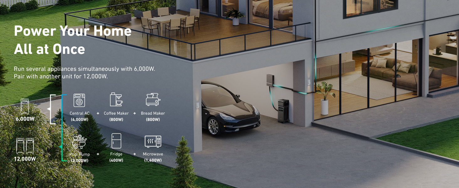 • 12,000W of Dual-Voltage Power: With Double Power Hub, your output rises to 12,000W, and you gain 120V/240V split-phase power-great for all lighting, secuirty system, Internet, Ac units and appliances at your business premise.